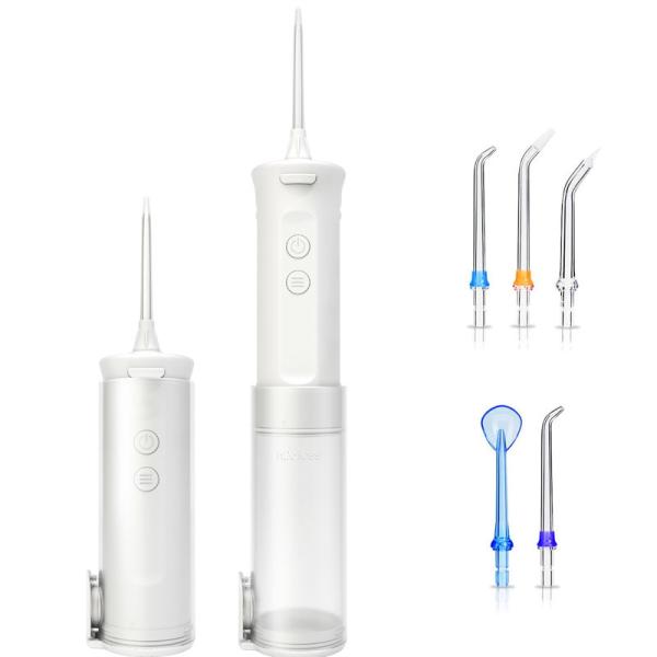 4.Leak-proof and Easy to Clean Water Tank -- with 200ml water reservoir provides enough and uninterrupted oral dental flossing.Just press the button, the water tank can be disassembled. it's much easier to clean the limescale inside of the water irrigator tank.Internal Leakproof Drainage Design has exclusive patent, which provides you safe and comfortable flossing experience.
